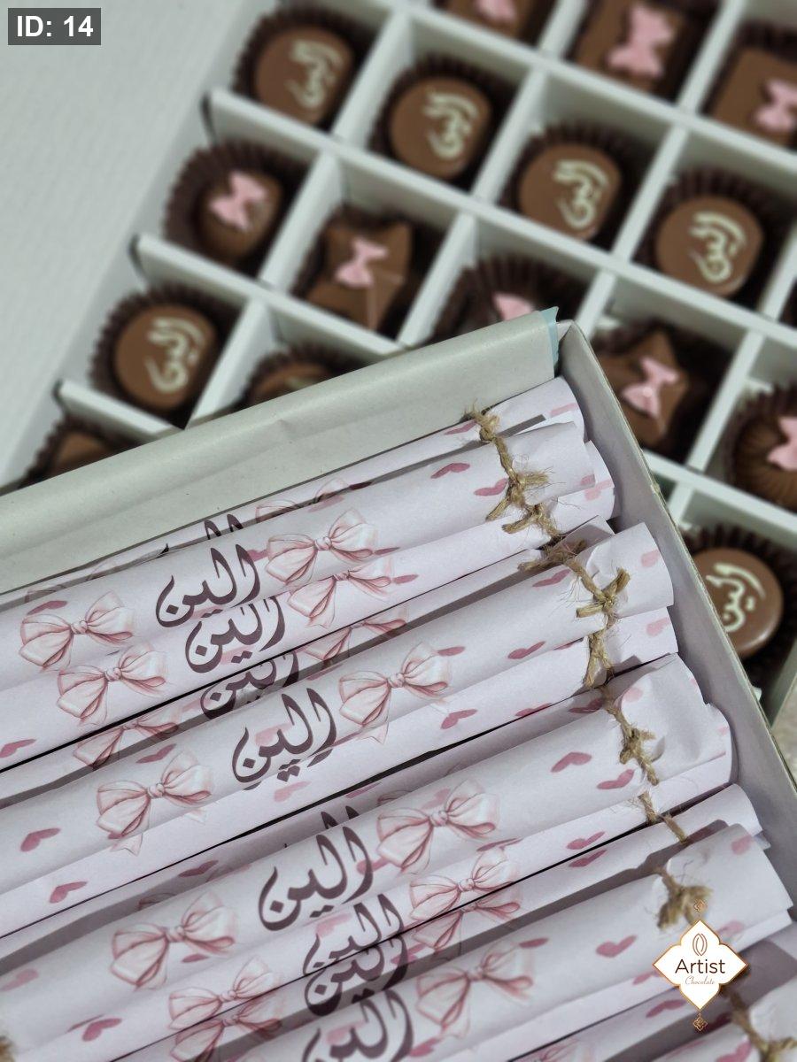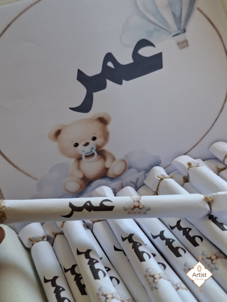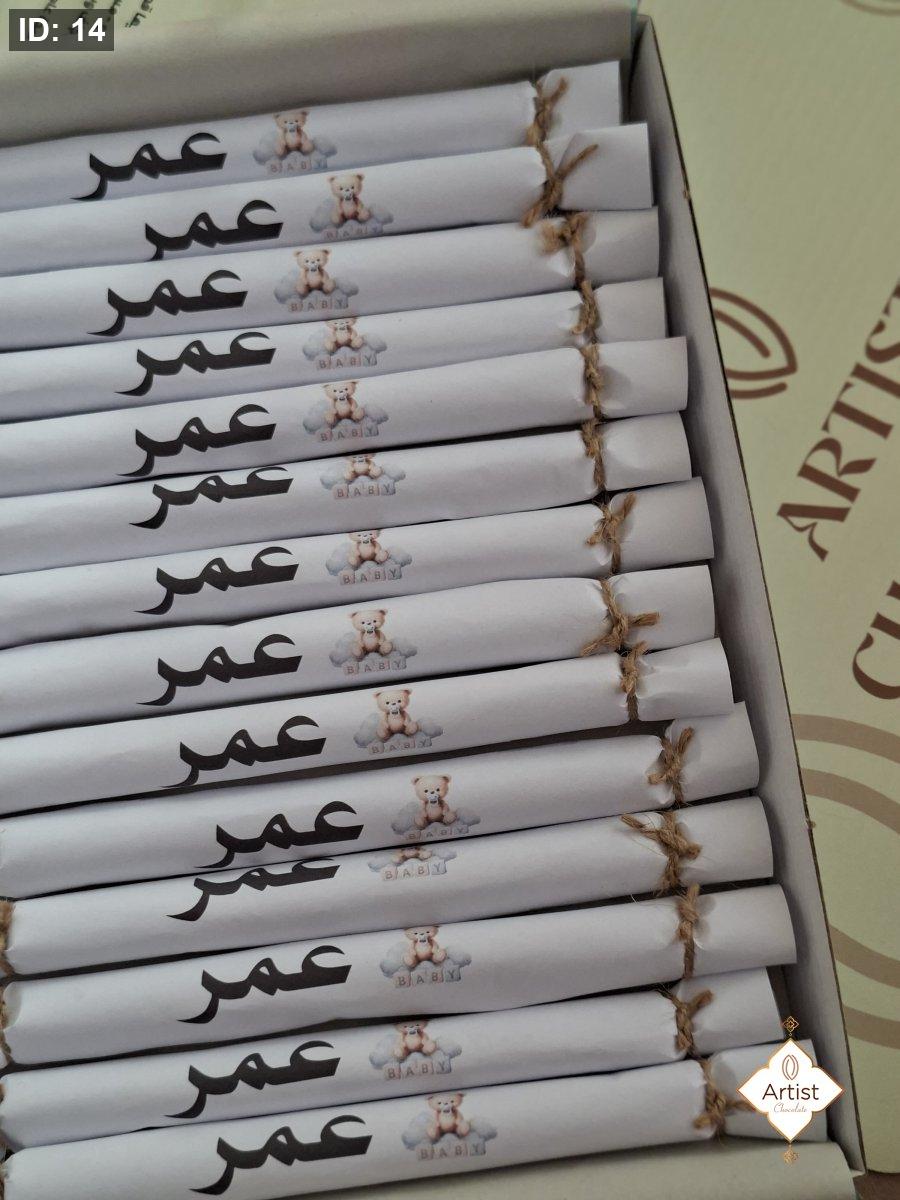 سوجار الشوكولاتة الطويلة بطعم يفرّح القلب وشكل يسرق الابتسامة، توزيعة مواليد مليانة حلاوة تناسب أجمل بداية 👶🍫💖