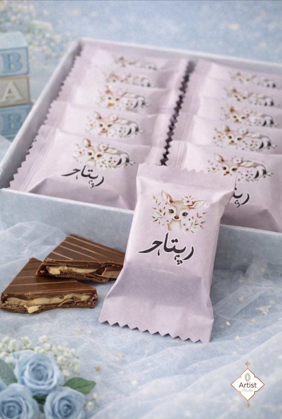 مربعات شكولاتة فاخرة محشية بتشكيلة حشوات مميزة كل قطعة بطعم مختلف وتجربة خاصة .. من المقرمشة الغنية لنعومة الحشوة تفاصيل صغيرة بطعم كبير تضيف لمسة سعادة لكل مناسبة