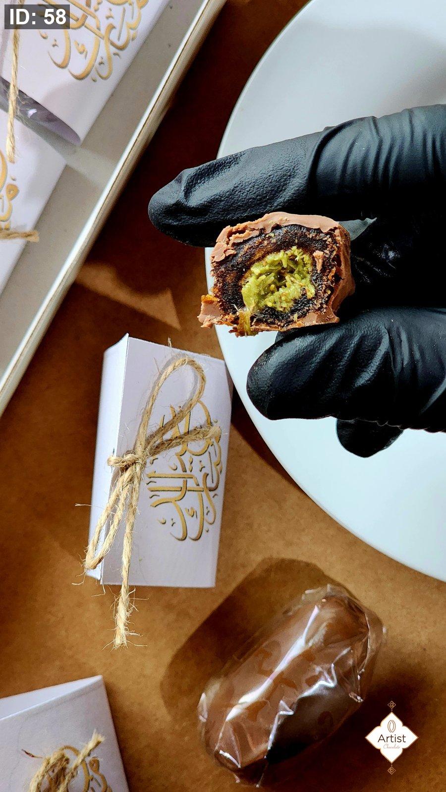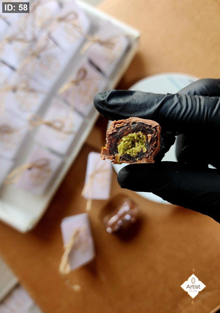 تمر محشي بالبستاشيو مع الكنافة ومغطس بالشكولاته